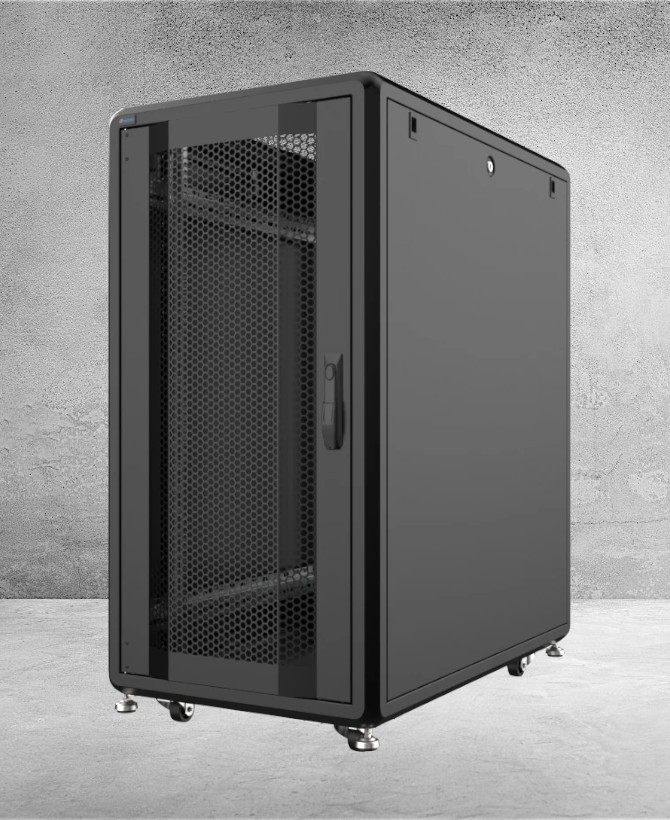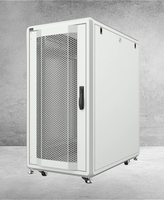 Het Mirsan 22U GT Versatile Cabinet is geconstrueerd op basis van Mirsan’s unieke ontwerp met afgeronde hoeken en rechte delen voor maximale stevigheid en stabiliteit. De serverkast is voorzien van een afsluitbare rookglas voordeur. De zijpanelen zijn uitneembaar, waardoor de binnenkant van de serverkast optimaal bereikbaar is.